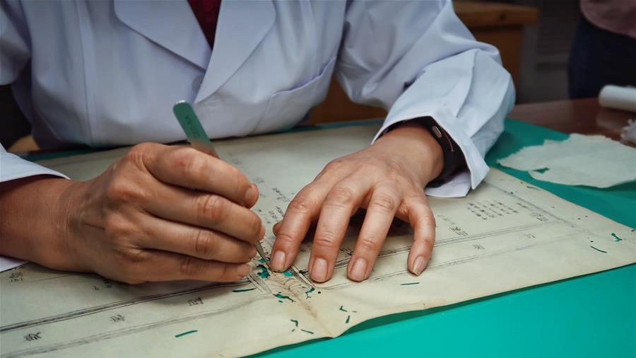 5月12日,浙江诸暨龙溪村的百岁老人蔡渭东在家中处理竹篾。