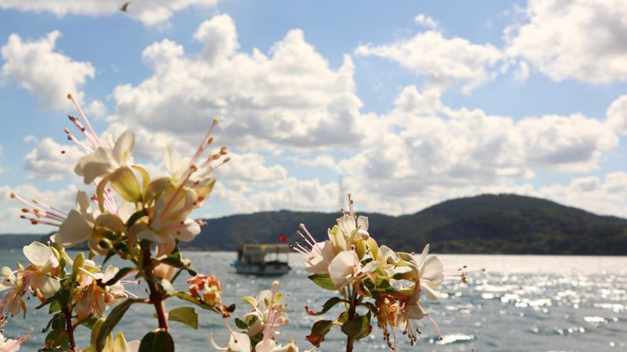 这是8月3日在土耳其伊斯坦布尔拍摄的海滨美景。