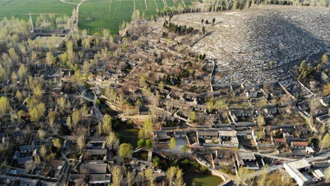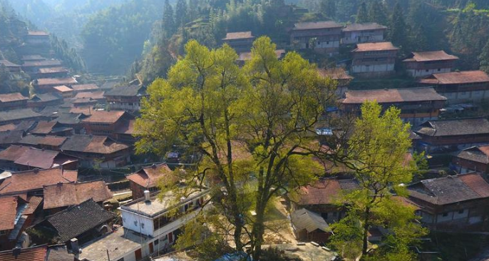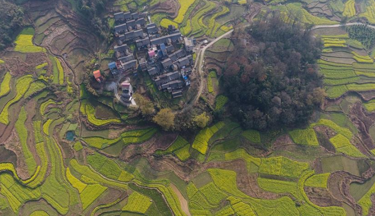 这是3月29日无人机拍摄的广西融水苗族自治县杆洞乡党鸠村的田园春色。