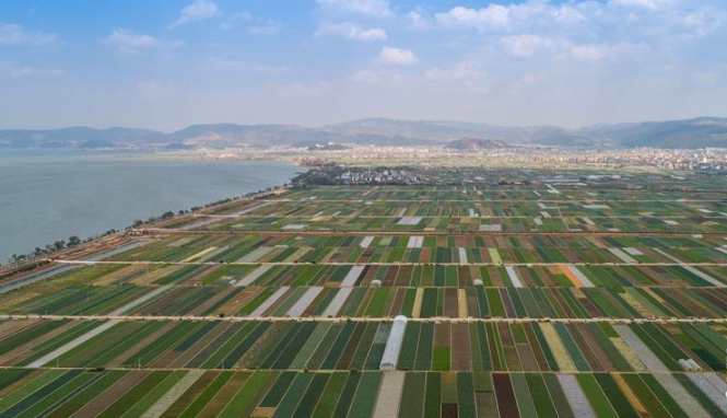 时下正值农忙时节,云南省玉溪市通海县的农作物长势喜人,秀美田园春色组成一幅色彩斑斓的画卷。