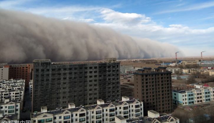 甘肃张掖沙尘暴来袭 “沙墙”高达上百米