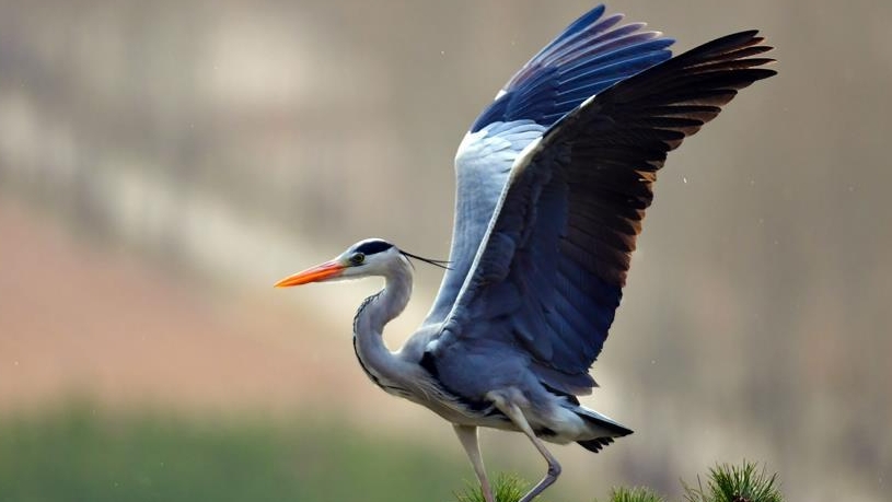 山西吕梁:苍鹭舞林间
