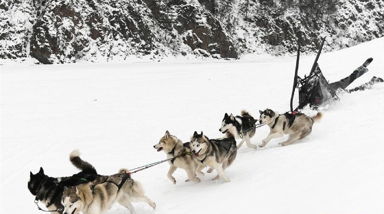 俄罗斯举行狗拉雪橇比赛