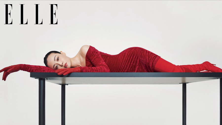 谭卓时尚大片曝光 盘发造型大秀天鹅颈