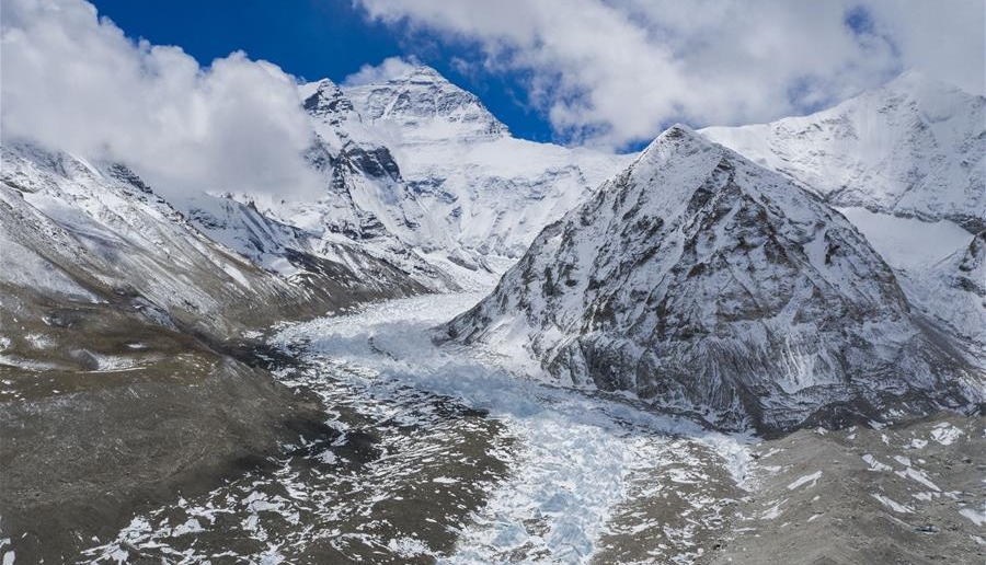 位于珠穆朗玛峰脚下海拔5400米左右的中绒布冰川,巍峨壮观,冰塔林托起世界最高峰,让人叹为观止。