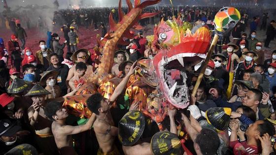 广西千年民俗“炮龙节” 数十万人狂欢祈福新年