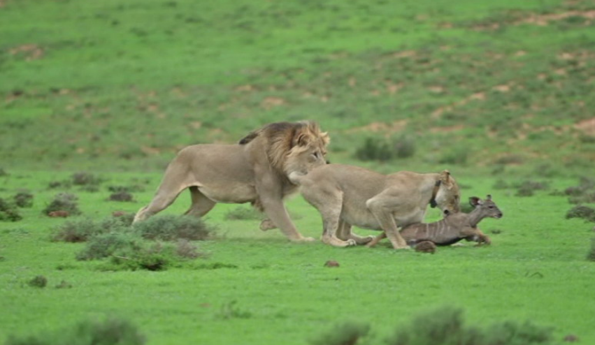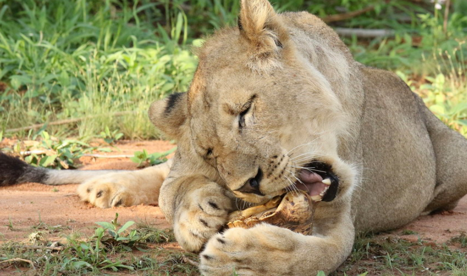 肯尼亚狮子捉了只乌龟当“零食” 啃不到肉肉好生气!