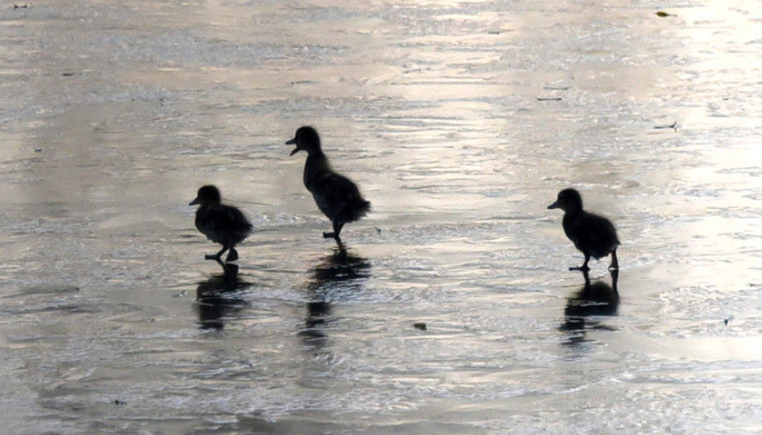 玉渊潭野鸭宝宝“溜冰“戏水萌萌哒