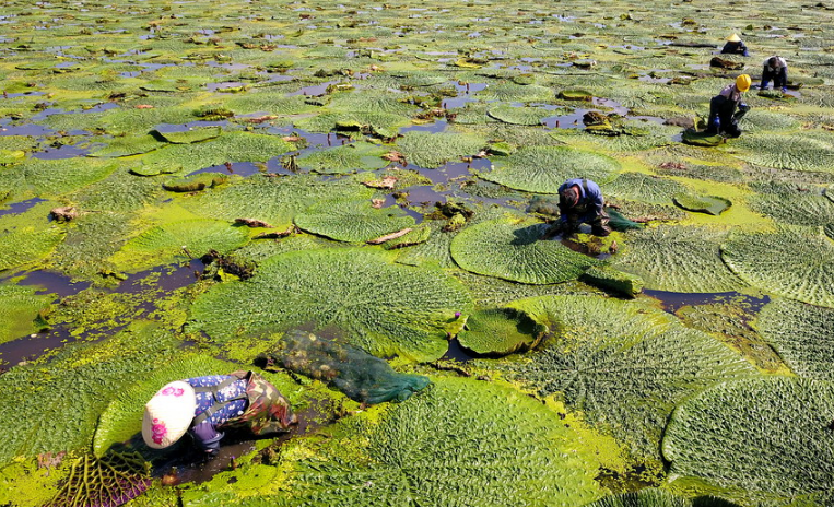 罕见的壮观场面!万余亩芡实迎来收获季