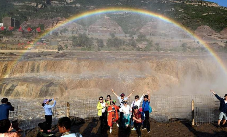 山西临汾:黄河壶口瀑布现“彩虹门”景观