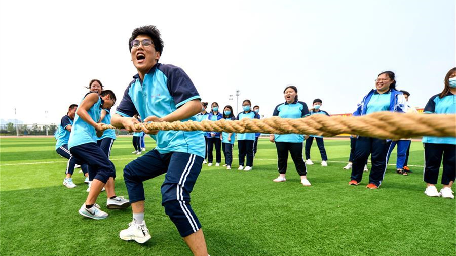 2020年高考临近,河北省邯郸市邯山区第一中学在积极做好高三学生复习备考的同时,开展多种形式的减压活动,帮助学生释放紧张情绪。
