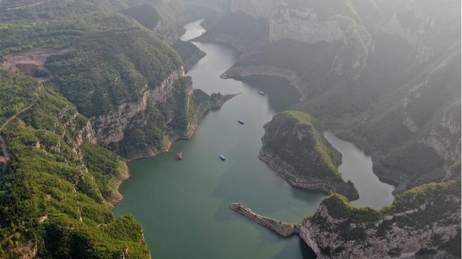 黄河小浪底水利枢纽工程位于黄河中下游。夏日里,山水交融,景观壮美。