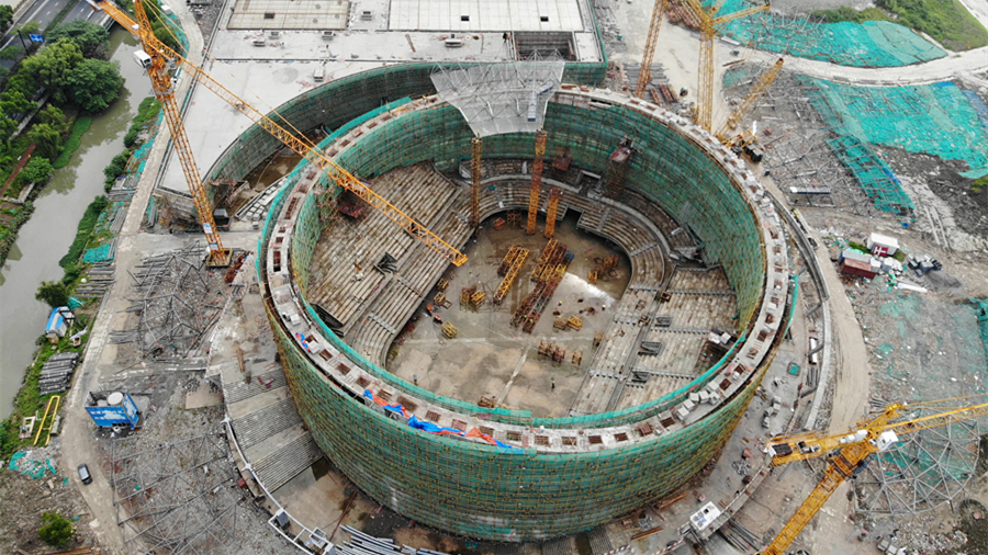 杭州亚运会乒乓球馆主体结构完工 “玉琮”轮廓初现