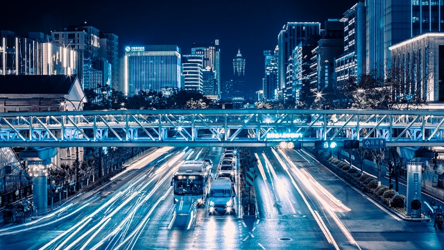 2020年4月24日晚,杭州延安路天桥上拍得杭州环球中心。