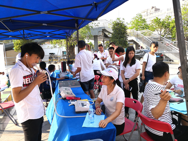 本次《大讲堂》活动走进观澜福诚街道章阁社区,向社区居民传递健康。白衣天使们不顾炎热的天气,用肺活量测试仪、握力测试仪、纵跳计测试仪等设备为社区居民进行免费体测;深圳狮子会代继宏先生现场为大家进行了糖尿病预防知识的宣教。据悉,深圳狮子会致力于关爱社区群众,传递健康环保知识,为社区居民举办健康大讲堂,推动健身热潮,并组织社区居民进行体质监测等多种形式的知识宣讲,促进社区和谐建设。