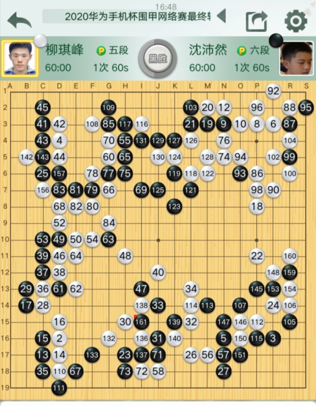 见圳客户端、深圳新闻网2020年3月17日讯(记者 周锦春)下午2点,2020年“华为手机杯”围甲网络热身赛第七轮继续进行,此轮深圳宏发队对阵上海清一队。截止下午4点30分左右,深圳宏发队悉数收官,最终以4:0全胜战绩闯过上海清一队这一关。目前,深圳宏发队七轮总积分为14分,在A组坐稳小组第三,待A组另三场明日结束即可见分晓。最后一轮是AB两组前两名进行同名次的决定赛,仍在腾讯野狐围棋平台,时间是3月19日。