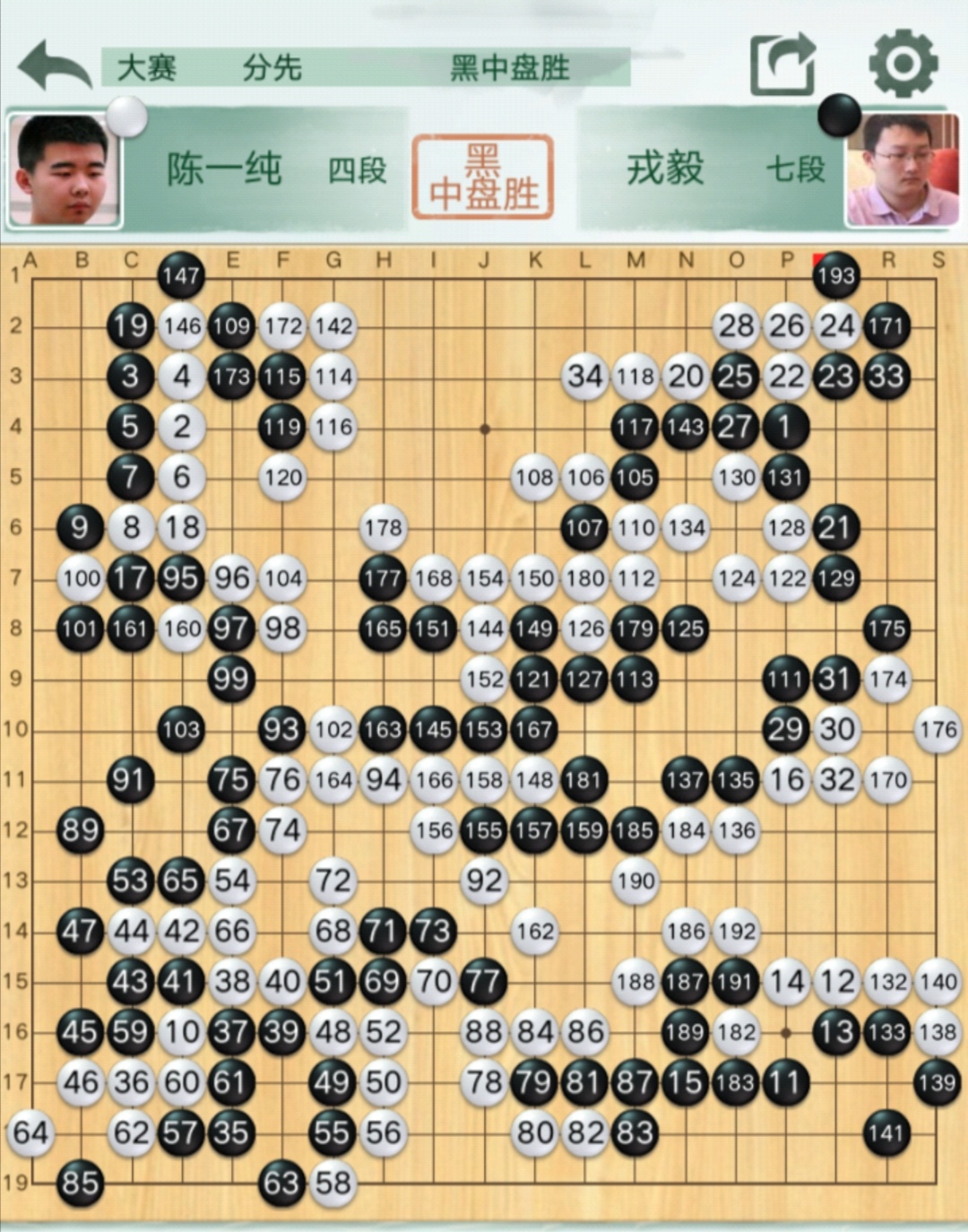 陶欣然自评:布局阶段至44的转换差不多。黑63动出至79收获不大,白方确立优势。白116吃住左下角后领先不少了。