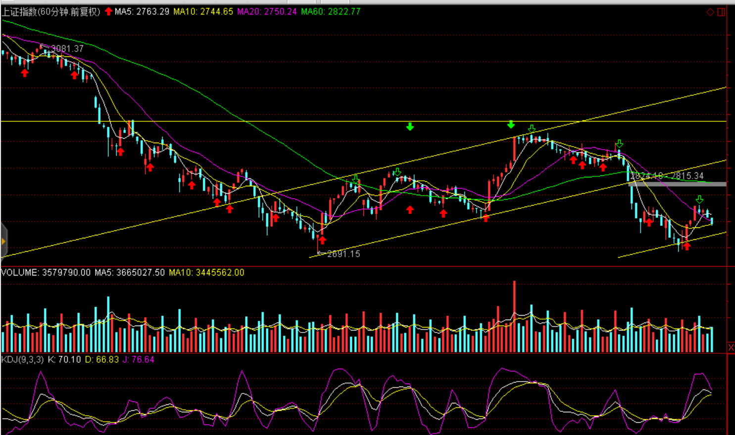技术面:短期技术面弱势特征,沪指60分钟通道下轨支撑,今日支撑2743点;创业板1430--1470点反复拉锯构筑阶段底部,今日支撑1434点。