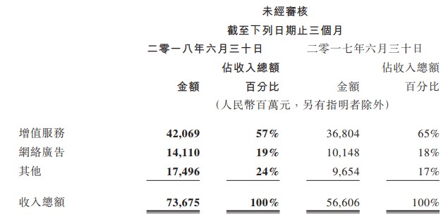 下面我们看该公司业务收入的变化,先看大类分录,有增值业务、网络广告和其他业务。