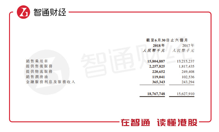上半年,该公司收入增长20.1%,其中乘用车销售收入增长19.6%,售后服务收入增长为24.3%,供应链业务收入下滑3.4%,金融服务收入增长50.2%,以上四类收入贡献分别为84.2%,12%、1.8%和2%,收入增长贡献分别为82.5%、14%、-0.4%和3.9%。