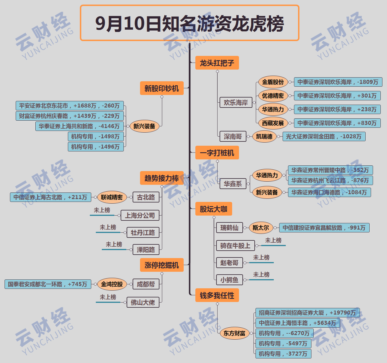 其他知名游资今日上榜不多,深南哥卖出凯瑞德(002072)1028万,瑞鹤仙991万砸盘斯太尔(000760),成都帮买入金鸿控股(000669)745万。