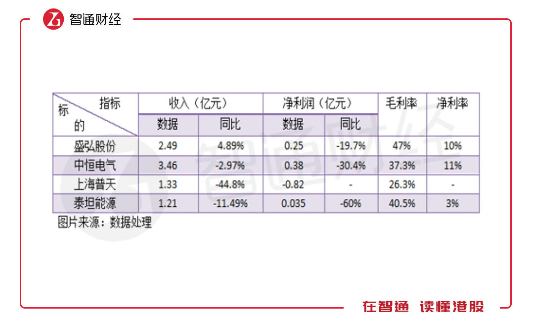 中游设备供应商中,包括A股上市公司盛宏股份、中恒电气、上海普天以及港股唯一一家充电桩供应商泰坦能源技术(02188)。从收入及利润数据上看,2018年上半年参与者收入和净利润均呈现较大幅度下滑,凄惨的很,要知道新能源汽车销量增长了一倍多,且参与者的利润率也很低。