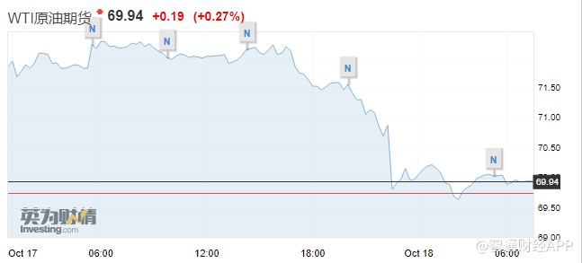 截至发稿,报80.37美元/桶,升0.05%或0.04点。WTI原油也有所下跌,报69.94美元/桶。