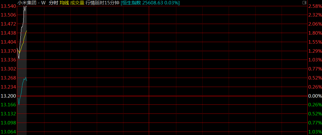 智通财经APP获悉,双11全天,小米集团(01810)新零售全渠道支付金额创下52.51亿元新纪录。早盘高开1.36%,截至09时38分,涨2.43%,报价13.52港元,成交额2988.85万。