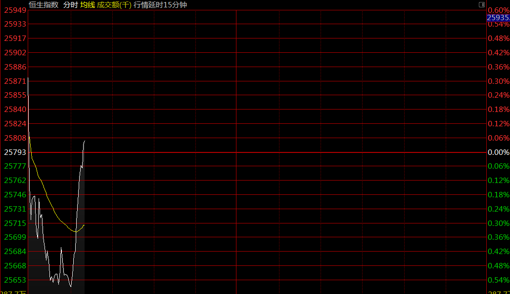 智通财经APP获悉,恒生指数开盘涨0.32%,报25874.36点。国企指数涨0.24%,报10503.81点。红筹指数涨0.44%,报4250.64点。大市盘前成交17.33亿港元。