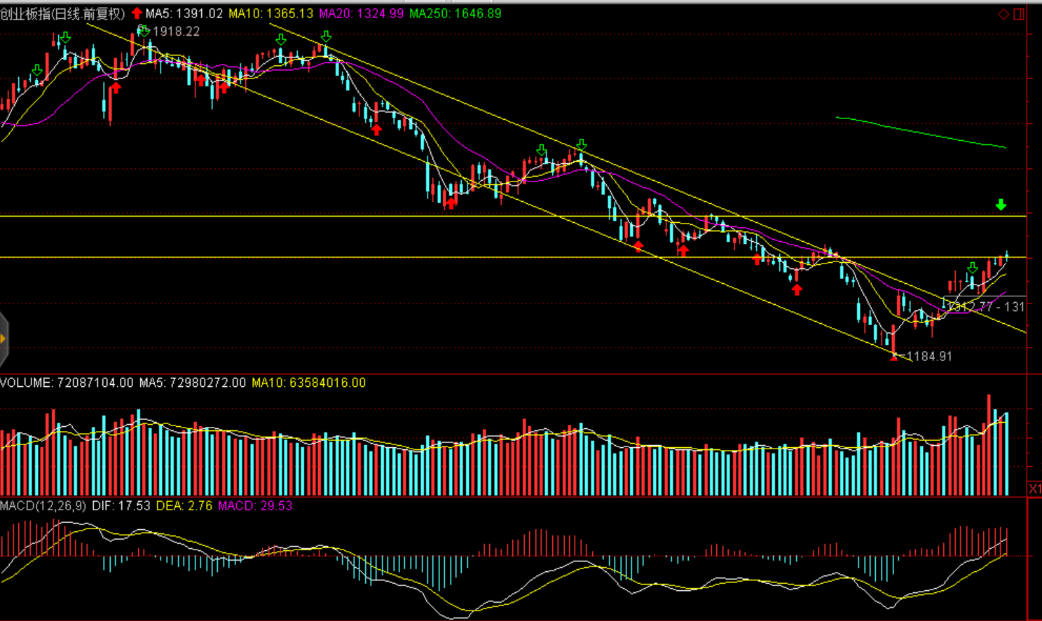 技术面:上周周线量价配合震荡上扬趋势,自10月19日见底以来运行21个交易日,短期指数仍有反复上扬需求,本周20周均线面临压力(沪综指2700点一线、创业板1430点一线)。