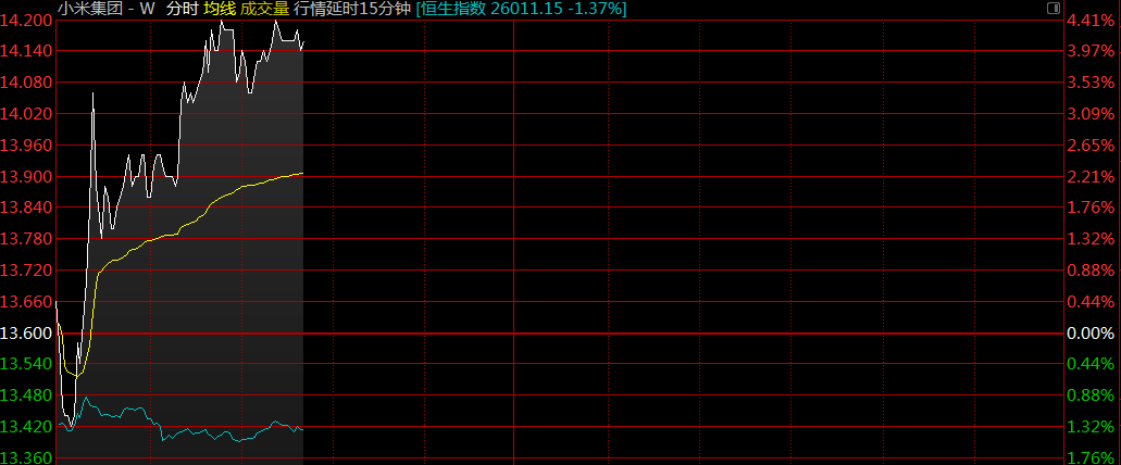 智通财经APP获悉,小米(01810)昨晚公布三季度业绩,前三季度业绩由亏转盈100.86亿元人民币,10月末手机出货量破1亿。截至9时43分,涨2.21%,报价13.9港元,成交额2.88亿。