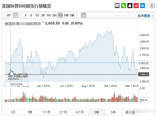 与此同时,标普500也下跌到了在今年4月以来的最低水平,较9月21日触及的2940点历史高位和2018年年初数分别下跌了超12%和2.75%。
