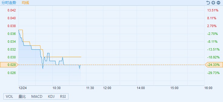 智通财经APP获悉,香港生命科学(08085)面临出牌,股价重挫,截至11时18分,跌24.32%,报价0.028港元,成交额78.43万。