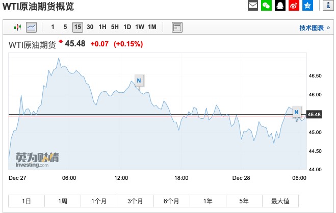 截至发稿,WTI原油涨0.07美元,涨幅0.15%,报45.48美元/桶。(刘大洋)