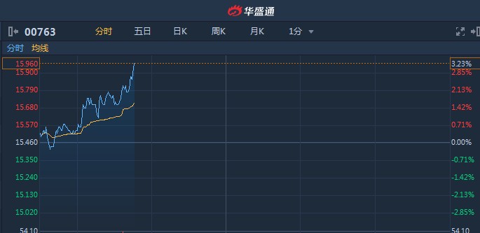 中兴通讯(00763)A股快速拉升涨幅超5% H股跟涨3%