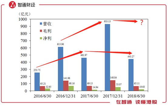 首先看一下中国宏桥的财务数据。智通财经APP统计了近三年公司的营业收入、毛利润及净利润,发现就2018年中期业绩来说,营收443亿元已经比2017年同期461亿元降低了约4个百分点,毛利润也由69亿元降至65亿元约5.8%,唯一升高的只有净利润,从约15亿增至19.6亿元。