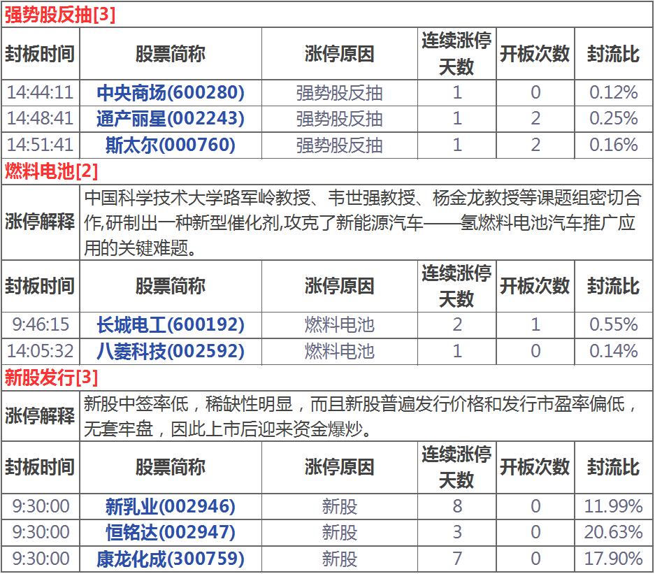 今天涨停家数较上一交易日有所减少,两市75家涨停,跌停1家。成交量方面,沪市成交1567亿元,深市成交2085亿元,两市总成交额约为3652元,较上一交易日放量453亿元。盘面上板块普涨,OLED、医药、天津自贸区、氟化工等板块涨幅居前。