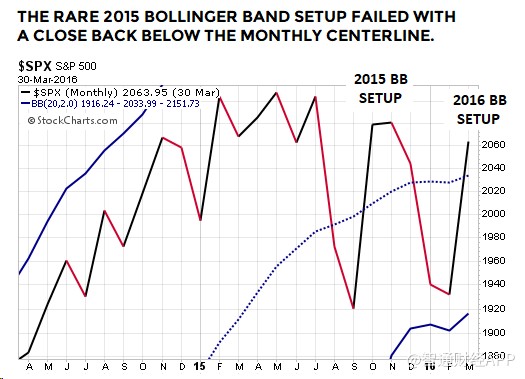 标普500指数从布林通道月线中轨以上跌至中轨以下,然后再反弹收高于中轨以上,并在此期间一直维持在下轨以上,这是标准普尔500指数相对少见的走势,而这正是2018年至2019年发生的情况。