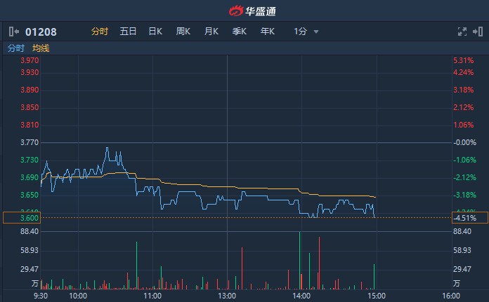 智通财经APP获悉,五矿资源(01208)今日震荡走低,截至14时57分,跌4.51%,报3.6港元,成交额达4480万港元。