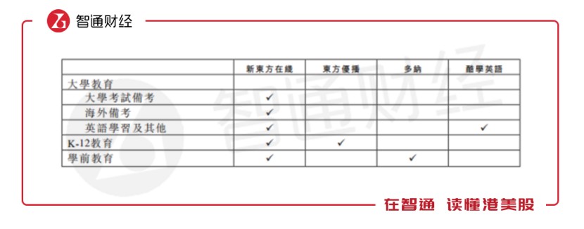 智通财经APP了解到,新东方在线的大学分部课程的主要提供平台为新东方在线及酷学英语,K-12教学分部课程主要在新东方在线及东方优播上提供,学前分部课程主要平台则为多纳。新东方在线总共提供共计近3000门课程。