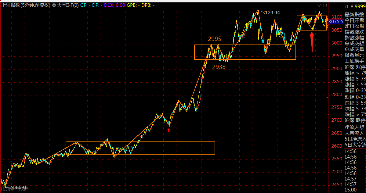 对于上证指数来说,上周市场走势超预期,这地方构建了一个针对五分钟上涨趋势中第二个中枢的第三类买点。在一段趋势中,90%结束于第二个中枢结构,看这次能否走出超预期的行情,个人觉得很困难。周末科创板消息,让资金在周一存在很强的利好兑现的欲望,还需谨慎谨慎再谨慎。