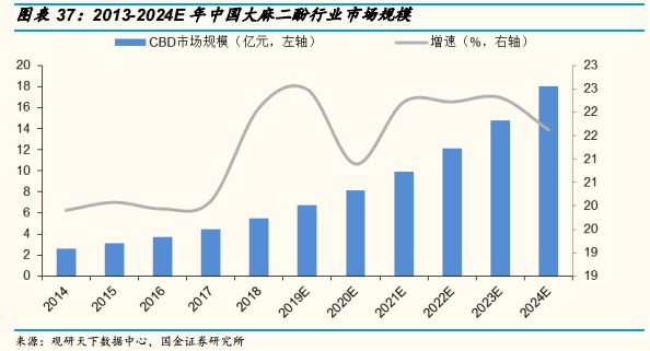 根据观研天下数据中心的研究:中国大麻二酚行业市场规模也将会快速增长。