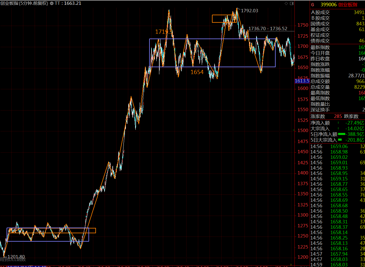 创业板指数相对弱势,本周两次上攻1720点压力位未果,现再一次回撤至中枢下轨1654点附近,关注该点位的支撑力度,跌破后,需第一时间控制仓位,防范风险。
