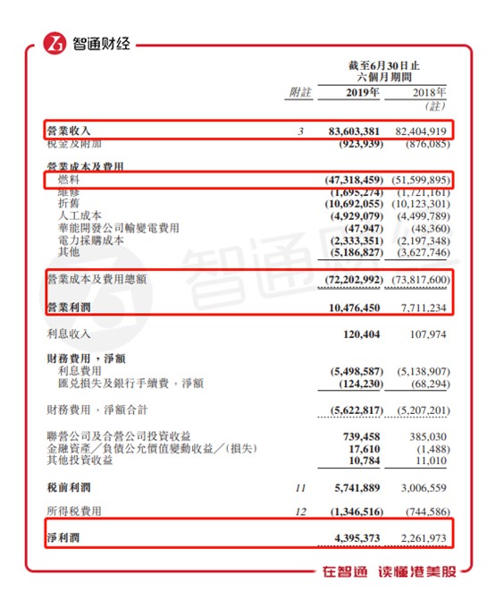 营收微涨的同时,燃料费用带动成本大幅下行,华能国际净利润得以翻倍增长。智通财经APP了解到,尽管2019一季度矿难事故等因素对煤价产生扰动,但动力煤价中枢下行趋势已经确立,以秦皇岛港口5500大卡动力煤为例,1-6月份均价为609元/吨,同比回落62元/吨,跌幅9.24%,全国电煤价格指数均值同比下降6.7%。华能国际上半年境内火电厂售电单位燃料成本为223.81元/兆瓦时,同比下降5.57%,上半年共计发生燃料成本473.18亿元,较上年同期下降9.19%。在成本端改善和售价提升双重提振效应下,公司最终录得股东应占净利润同比增长98.78%至34.42亿元。