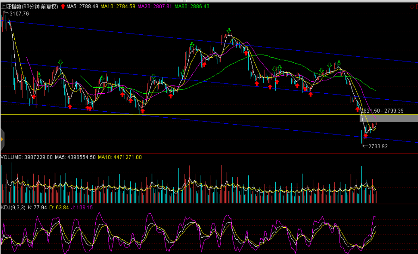 技术面:沪综指自4月高点调整以来形成下降通道在跌穿2822点后延续中期调整趋势,60分钟自7月2日形成调整位于2730点一线产生技术性反抽,2820点一线或将构成反弹压力。