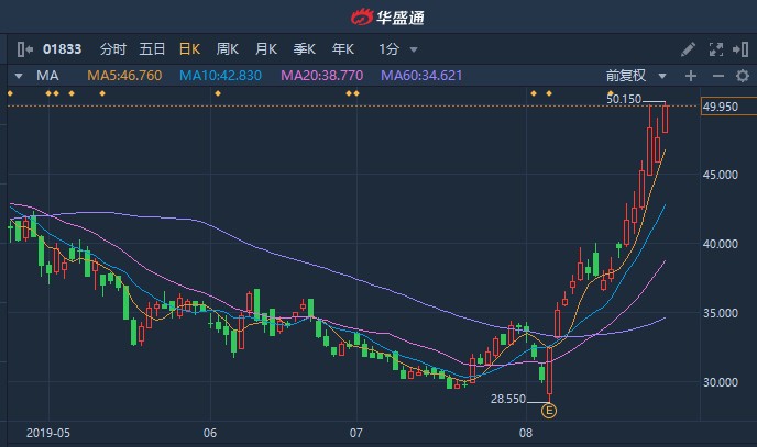 智通财经APP获悉,国家医保局正在制定互联网医疗的物价指导原则,预计将于今年9月出台关于互联网医疗相关项目的物价政策和医保政策。市场憧憬互联网医疗医保政策落地,平安好医生(01833)股价持续攀升,本月累涨近65%。截至发稿,涨4.41%,报49.75港元,成交额7558.81万港元。