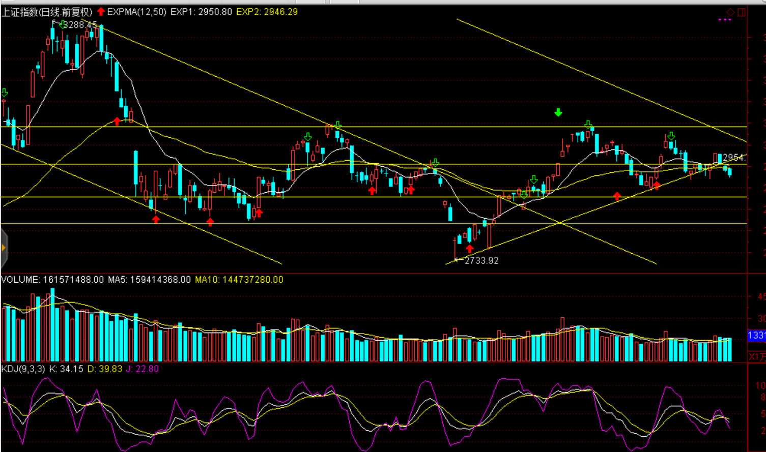 技术面:短期弱势震荡、沪综指围绕2950点一线上下波动。