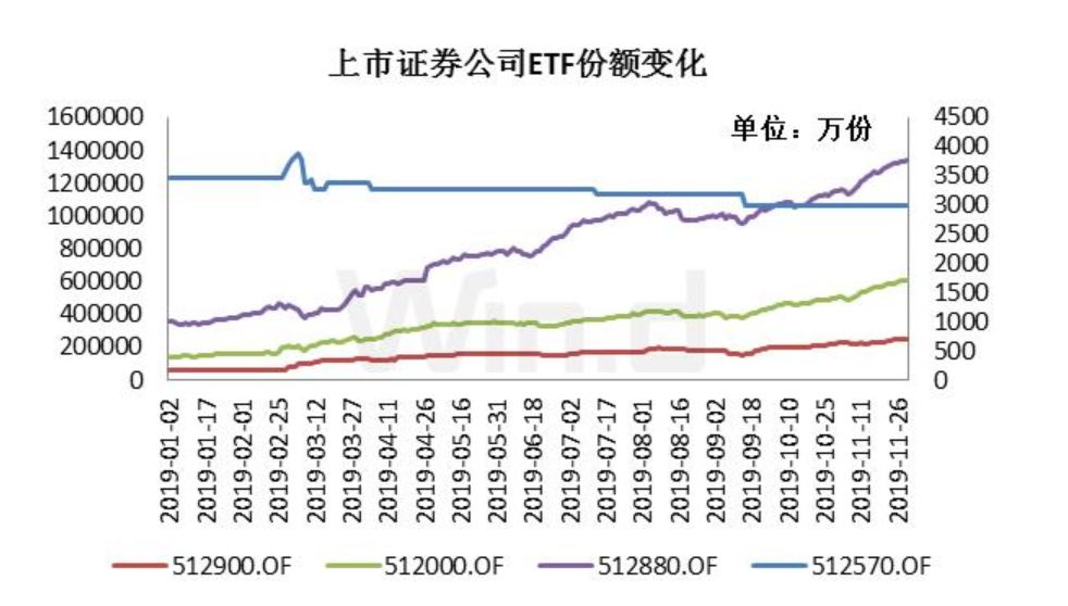 三季度以来,资金持续流入证券公司ETF,国泰中证全指证券公司ETF、华宝中证全指证券ETF和南方中证全指证券公司ETF的份额也未停止增长。