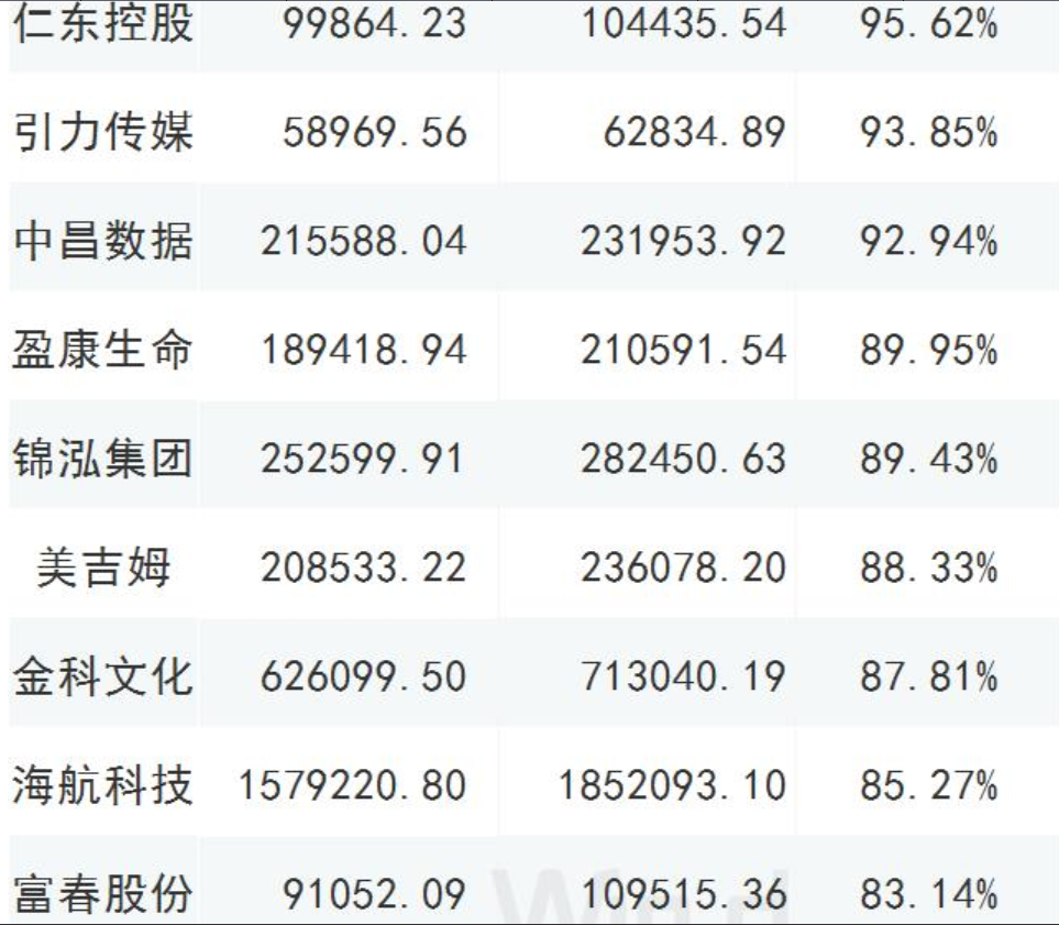 截至2019年三季报商誉占净资产比重大于70%的公司,共有46家;12家的比值超过了百分百,以下列举部分超过80%的公司;谨慎年终商誉减值风险爆发;