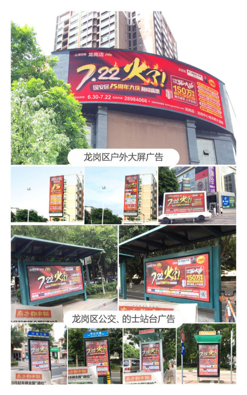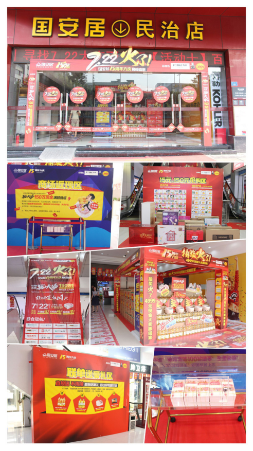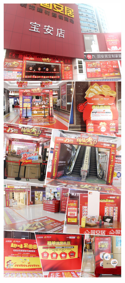 如今,国安居15周年大庆的消息已传遍鹏鹅两城。11重优惠成为众多装修业主的福音,目前,各分店全部张灯结彩焕然一新,高挂巨幅折扣牌,各环节的奖品堆积如山,户外广告铺天盖地,有图有真相。
